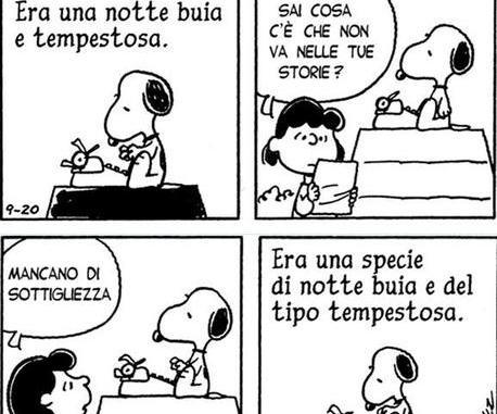 Gli insegnanti di scrittura creativa assomigliano in molti casi a Lucy e gli effetti che producono nei poveri Snoopy sono proprio quelli di immaginare che uno stile più raffinato, magari anche in modo solo derivativo se non caricaturale, possa legittimare quello che abbiamo appena buttato sulla pagina.