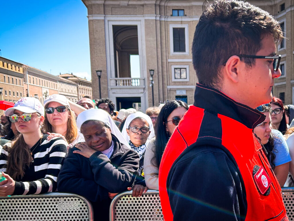 Il giorno del funerale di papa Francesco ero a San Pietro con un cane marrone legato a una transenna. Non era il mio. Lo aveva lasciato lì un fedele francese, perché non poteva farlo entrare in piazza. Del cane si sono presi cura i volontari della protezione civile che erano lì a dare assistenza sanitaria ai fedeli. Per tre ore hanno cercato di fargli ombra e dargli un po’ di acqua. Quando il fedele francese è tornato, i volontari gli hanno detto che non avrebbe dovuto farlo. Lui ha solo slegato il cane marrone e se ne è andato.
