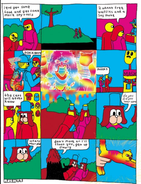 Dei tre, il fumettista principale è sostanzialmente Ben Jones, anche attivissimo sia nel campo dell’animazione (il suo Problem Solverz è andato in onda su Cartoon Network) sia in quello della solita arte contemporanea (è un artista quotato, posso confermare). Il suo stile è uno dei più riconoscibili in assoluto: un ultrapop lo-tech che predilige sgargianti giustapposizioni di colori in flat, e che rimanda più a Matt Groening che a Gary Panter.