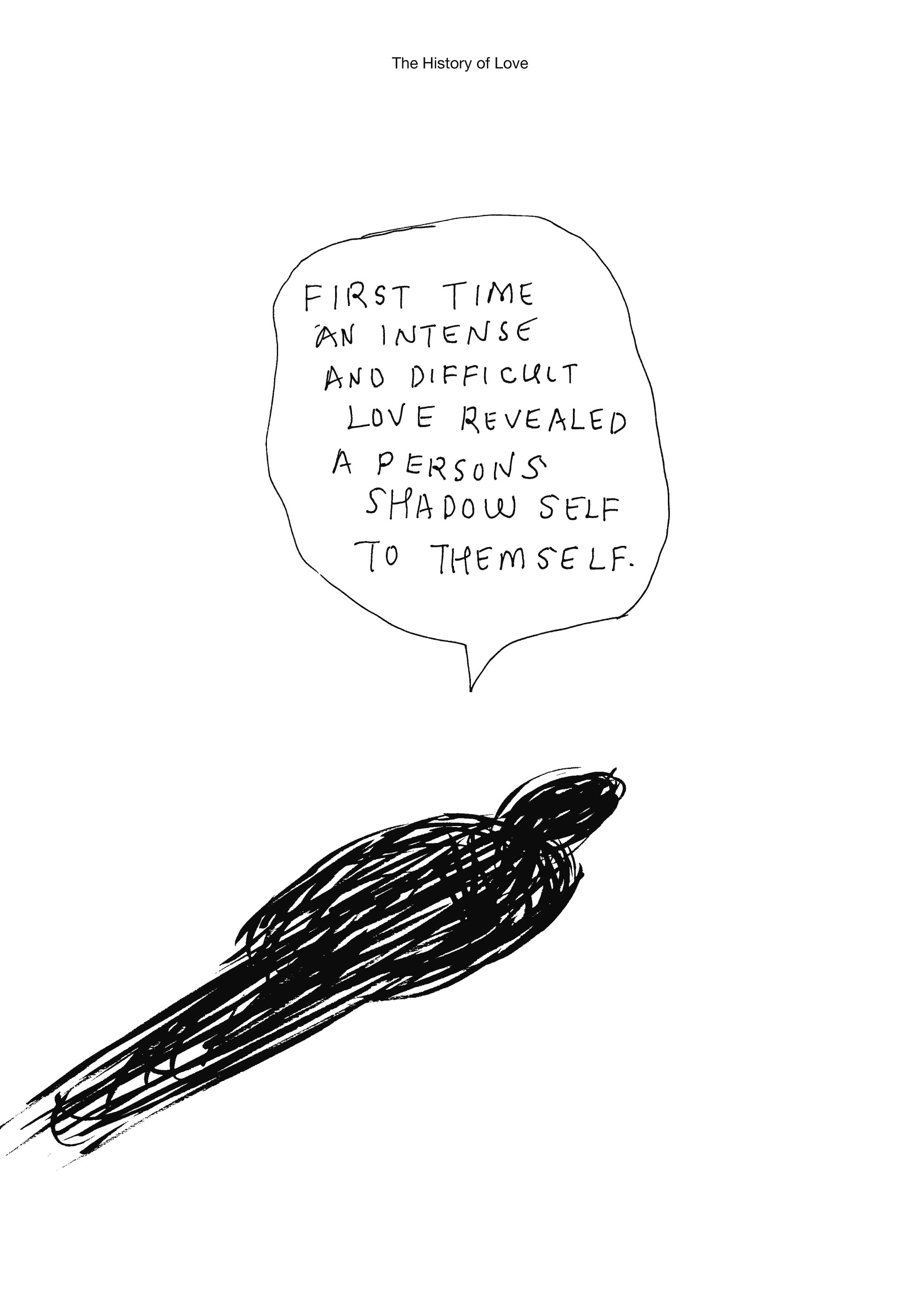 Il libro, rigorosamente in bianco e nero, è diviso in tre parti. La prima parte si chiama “La storia della tristezza” e comincia dalla creazione della terra (“tristezza non ancora inventata” dice la didascalia) per proseguire con il mare, gli uomini di Neanderthal e i disegni di momenti particolarmente tristi della storia dell’umanità. Come il giorno in cui venne inventato il romanzo, che isolando lo scrittore e inchiodandolo alla scrivania lo rese necessariamente triste. O il giorno in cui venne scoperto il primo tumore. O ancora, il giorno in cui vennero lanciati nel mercato internazionale i chicken mcnuggets (1983, con grande tristezza dei polli). La tristezza di Raymond Carver prima di riuscire a trovare il proprio stile. E quella della prima coppia che scoprì di essersi sposata per le ragioni sbagliate. Il primo gay che venne diagnosticato dagli psichiatri come mentalmente disturbato. E il primo topo su cui venne sperimentato il Prozac.