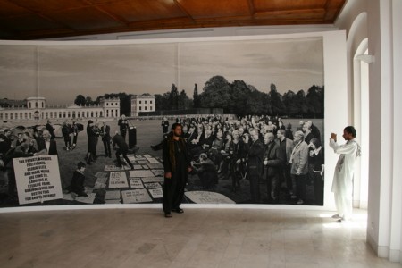 Gli organizzatori di dOCUMENTA (13) a Kabul hanno ragionato a lungo su questo circolo vizioso: «Da parte mia – racconta Mojadidi – sono convinto che se si decide di lavorare in Afghanistan è inevitabile stare dentro certi meccanismi. L’unico antidoto è quello di riconoscerli, di renderli trasparenti, di discuterne. Così abbiamo cercato di fare, creando un processo che non fosse importato dall’esterno o apparisse colonialista, ma che fosse il più possibile frutto delle specificità locali». Proprio Mojadidi ha avuto il compito di facilitare i lavori degli artisti internazionali (tra cui molti afghani della diaspora, come Lida Abdal, Jeanno Gaussi, Barmak Akram e l’ottimo Khadim Ali) selezionati per l’esibizione a Bagh-e-Babur, a cui è stato chiesto di realizzare opere che nascessero dall’immersione, per quanto temporanea, nel contesto locale. Tra quanti sono stati coinvolti, l’artista polacca Goshka Macuga, autrice di un interessante collage fotografico digitale di quasi 12 metri per 3, ha criticato in un articolo di Martin Gerner per l’Afghanistan Analysts Network di Kabul «la presenza minacciosa dei militari, e la segregazione delle élite internazionali dalla gente ordinaria», lamentando l’impossibilità di dare seguito al suo mandato. «Entrambi i lavori di Goshka Macuga, quello esposto a Kassel e quello qui a Kabul, sono ben riusciti – replica indirettamente Mojadidi -. Capisco le sue perplessità, ma credo che ci siano solo due soluzioni in questi casi: decidere di esporre, facendosi carico di tutte le incongruenze e le contraddizioni del caso, oppure rinunciarvi e boicottare, come ha fatto l’artista Natascha Sadr Haghighian, che avrebbe dovuto esporre e che invece ha preferito condurre soltanto uno dei nostri seminari».