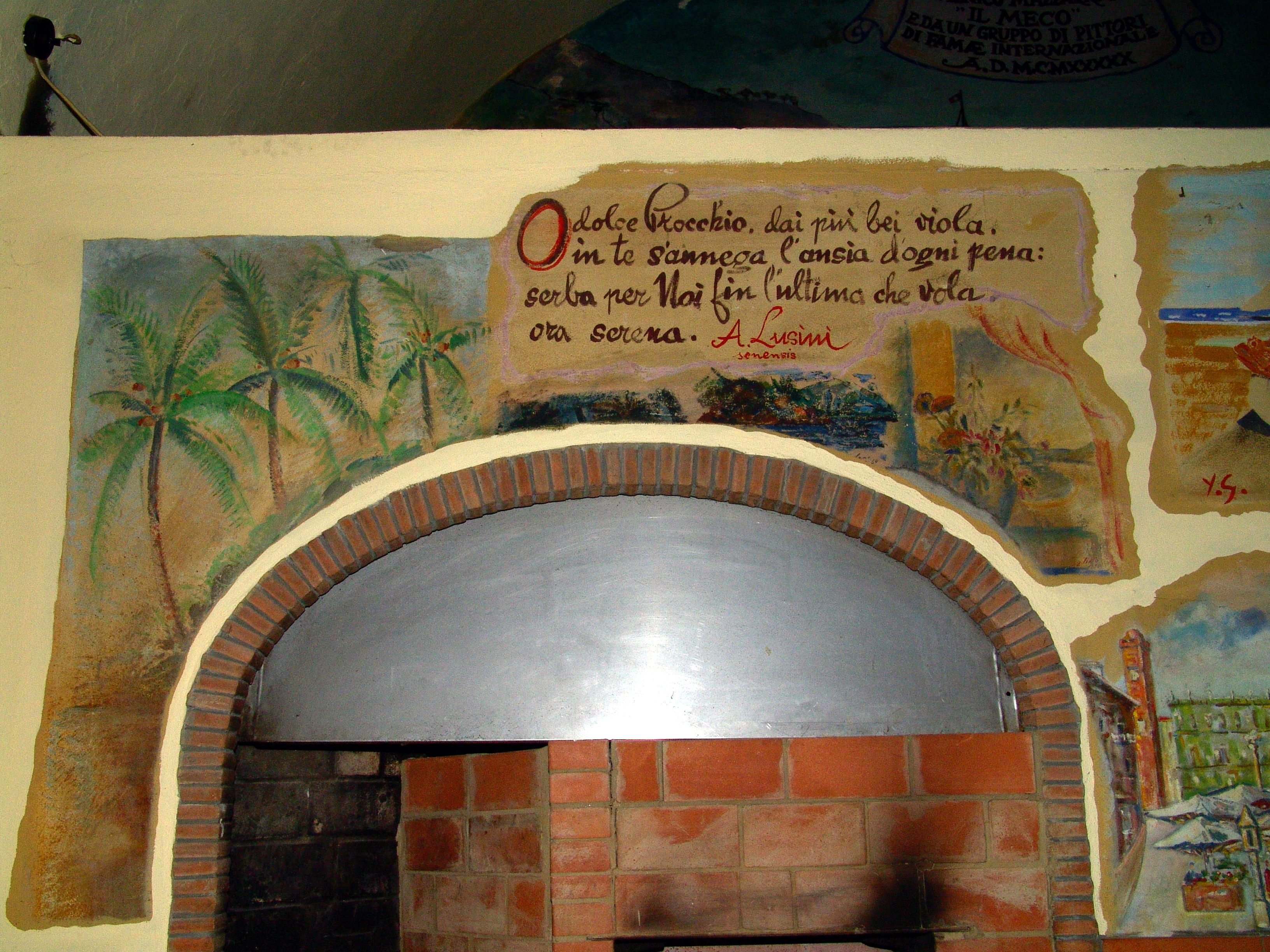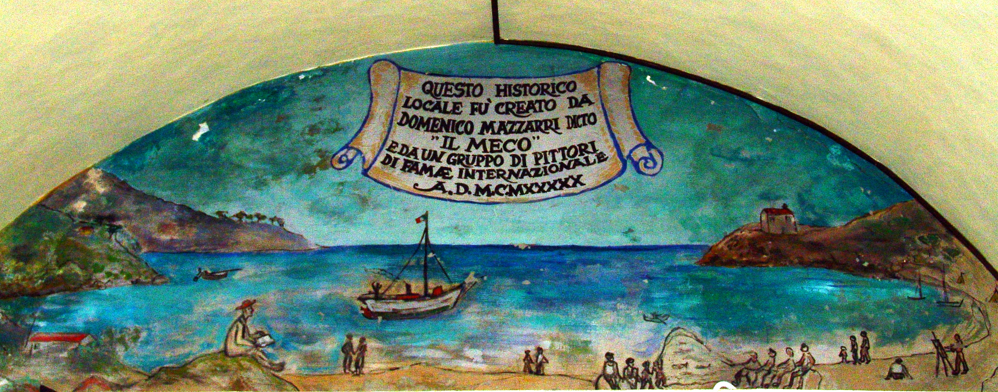 C’era anche Mazzarri il 19 agosto all’inaugurazione della mostra “I pittori delle dune” e per la prima edizione del “Premio Elba Beppe Lieto” riservato a chi dipinge paesaggi elbani. Era lì a raccontare di nuovo ogni cosa. E aprire un mondo, illustrando per esempio il cosiddetto “albero della cuccagna”, di Marcella Olschki. La storia raccontata nel piccolo dipinto divenne famosa per vie che portano lontano dall’Italia. Uno scrittore per bambini tedesco, Heinrich Maria Denneborg, se ne innamorò e, tra i personaggi ritratti dalla Olschki, scelse l’asino, di nome Grisella, come eroe della sua fiaba. Das eselchen Grisella (ossia L’asinello Grisella) ebbe un enorme successo e fu tradotto in tredici lingue. «Ogni stagione, qualche ragazzino arrivava con il libretto in mano» racconta Mazzarri «Lo vedevo da lontano e già capivo. Veniva a cercare l’originale del suo amato asino e restava lì per ore, mentre i genitori, invece, guardavano il resto». Il resto sono gli affreschi dei pittori delle dune, certo, ma anche quelli di chi li raggiunse, come Felice Carena, Valentino Ghiglia o Denis Martinez, noto pittore algerino, nonché i tratti anonimi di chi venne qui a inseguire un ideale. Tutti quei pittori che si riunirono sotto l’egida del cosiddetto “Meco”, il vecchio oste omaggiato sull’affresco più grande, che, in fondo alla sala, su un golfo di Procchio estivo e festante occupato soltanto da pescatori e pittori, recita: «Questo historico locale fu creato da Domenico Mazzarri dicto “Il Meco” e da un gruppo di pittori di famae internazionale». Laddove il genitivo maccheronico “famae” va letto e interpretato seguendo la pronuncia. Non fama, cioè. Ma fame.