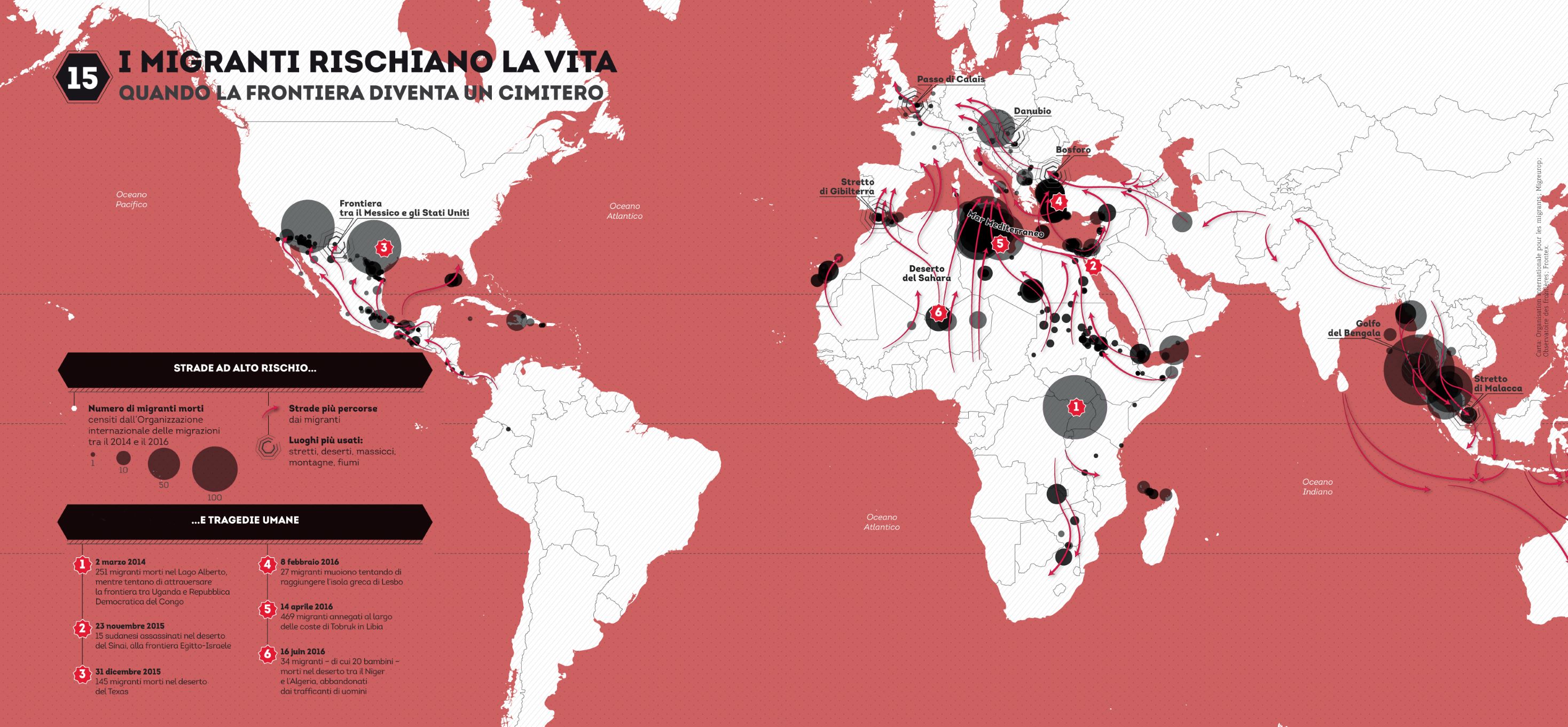 Oggi esistono 323 frontiere terrestri su circa 250mila chilometri. Il Continente europeo, che è culturalmente un insieme fluido dai confini incerti, conta circa cento frontiere per una lunghezza di 37mila chilometri. L’Atlante è davvero ricco di informazioni e mappe intellegibili con molte curiosità: la frontiera più antica risale al 1278 tra Andorra, Francia e Spagna. La più lunga, 8991 chilometri, delimita Canada e Stati Uniti. La più attraversata è quella tra Messico e Stati Uniti con 200mila persone al giorno.