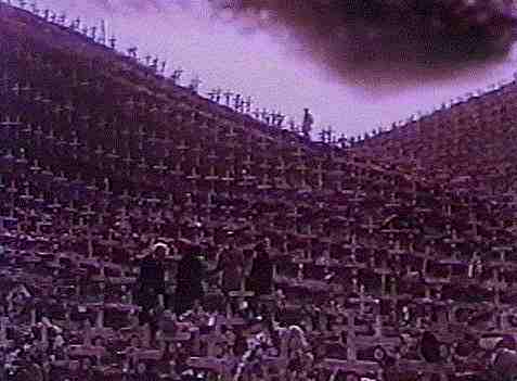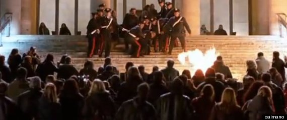 “…Papa, cardinali, principi, scienziati, condottieri, mercanti, pescivendole e scolaretti”. Su pescivendole, unendo con una linea immaginaria la punta dell’indice di Walter al suo obiettivo designato, l’attenzione del regista dietro la libreria si spostò dal bambino (in tunica nera e medaglione ballonzolante sul petto) fino alla madre di Stefano, in prima fila.