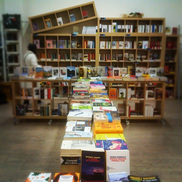 Con uno strattone, Eugenio si liberò dall’impaccio della giacca facendo pericolosamente oscillare la sagoma di cartone in avanti. Per evitare che cadesse – seppellendoli – su Walter e Stefano, oppose resistenza con troppa foga, determinando un contraccolpo tale da far cadere rovinosamente la libreria all’indietro: con un rumore di crollo che lo lasciò stordito, e con le mani rivolte al fondale a terra, come se ne volesse sottolineare il gesto circense: “Et voilàaa”, dicevano le mani di Eugenio, “esperimento riuscito”.
