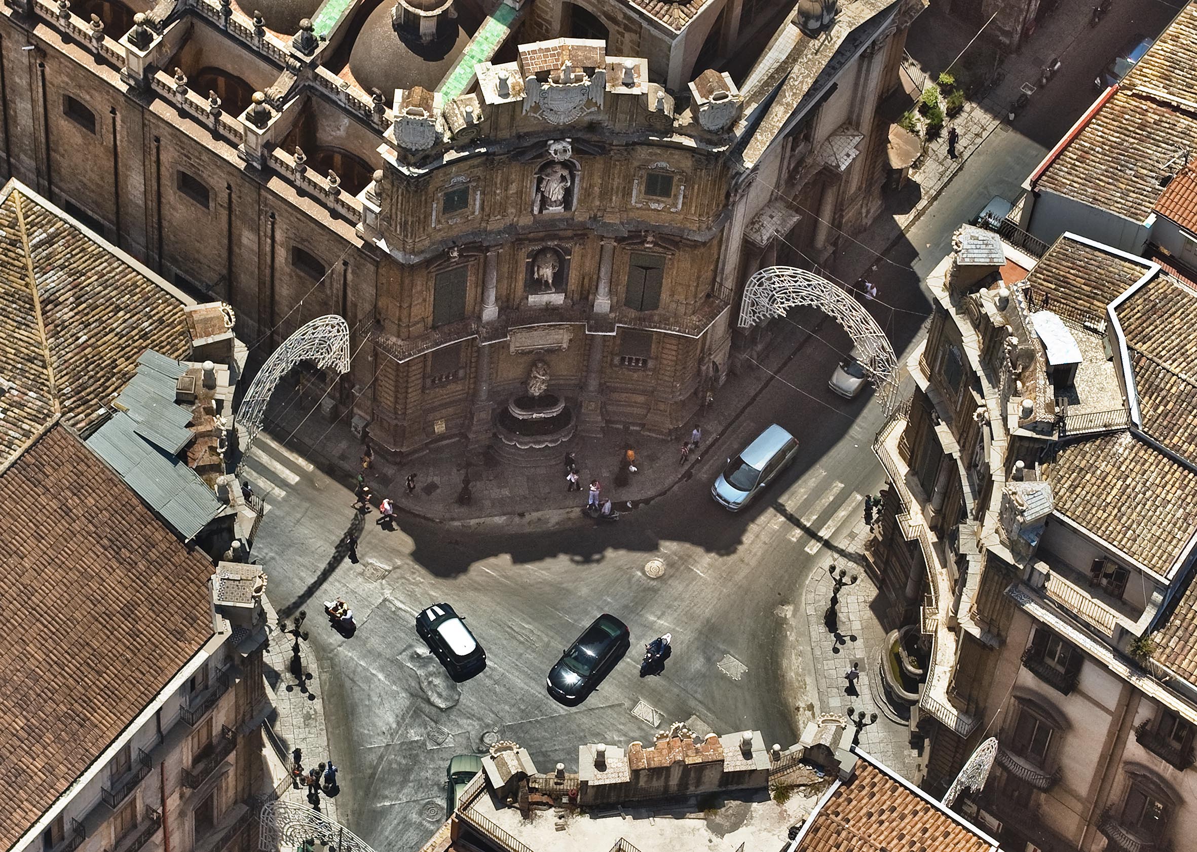 Palermo dal cielo è dunque, di fatto, la scoperta di un’ulteriore percezione dell’elefante (che, tra parentesi, è l’animale simbolo di Catania).