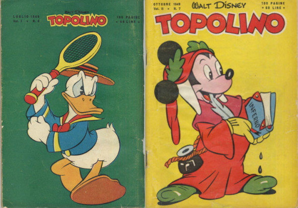 Faccio notare che “Topolino” nasce nel 1932 per i tipi della fiorentina Nerbini e che l”attuale “Topolino” sostituì subitaneamente il grande “Topolino giornale” con lo striminzito mensile cui siamo abituati. Mensile diventato successivamente quindicinale e poi settimanale. Per quanto riguarda invece la qualità delle storie temo ci sarà molto da scrivere e mi limito a chiedere un paragone fra le attuali e quelle del periodo 1953 – 1963.