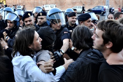 Ieri pomeriggio, a Roma, Castro Pretorio, intorno alle 17.00, una signora di circa sessant’anni, impermeabile beige e sigaretta mezzo consumata tra le dita, ripeteva stupefatta: “mi ricordo gli scontri degli anni Settanta, ma i poliziotti che chiudono la Biblioteca Nazionale non li avevo ancora visti”.