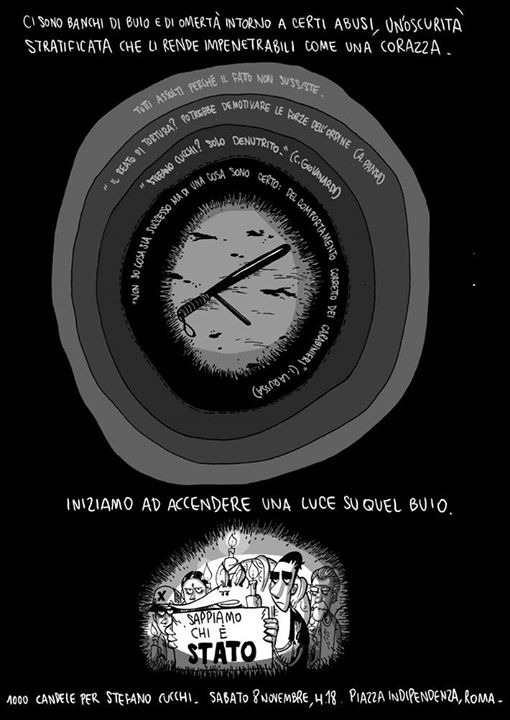 Oggi, sabato 8 novembre, alle 18 a piazza Indipendenza a Roma c’è Mille candele per Stefano Cucchi, una fiaccolata promossa da ACAD – Associazione Contro gli Abusi in Divisa Onlus. In fondo all’articolo, l’illustrazione di Zerocalcare.