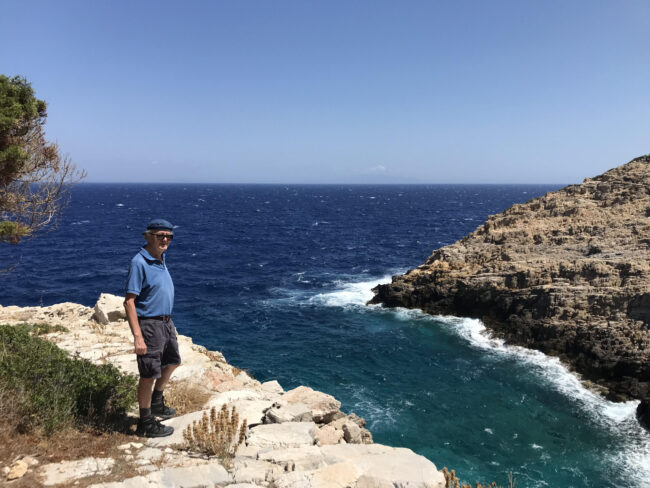 Givone sono venuto a trovarlo nella sua isola. Come se fosse la Delos delle origini, galleggiante sull’Egeo e senza nome, lascerò che abbia le sembianze del luogo magico e anonimo che ognuno di noi vuole sognare. Non è una fantasia, però, la terra rocciosa in cui ci incontriamo. Qui del resto Givone ha messo radici, ha comprato casa e ha fatto i conti con una consapevolezza nuova. Me ne parla con la gentilezza e la discrezione che sono suoi tratti caratteristici, mentre scendiamo verso l’antico porto greco dell’isola, una lunga passeggiata fra cespugli di timo e di lentisco, con il meltemi che soffia teso e il mare spumeggiante all’orizzonte.