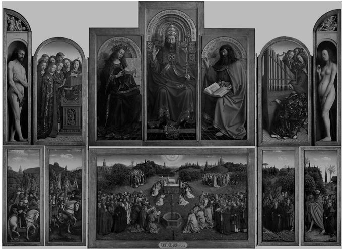 Si tratta di una pittura a olio (dimensioni: 375 x 258 cm) realizzata per la cattedrale di San Bavone a Gand, nel nord del Belgio, tra il 1426 e il 1432. Gli autori furono Jan van Eyck, l’artista che perfezionò la tecnica della pittura a olio, e suo fratello maggiore Hubert, che però morì prima del completamento del lavoro.