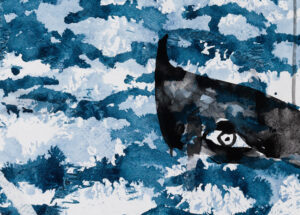 Le linee fluide di Miquel Barceló enfatizzano la materia liquida della poesia di Brancale: ovvero non c’è alcun tentativo di spiegare, di rappresentare il concetto dell’ineffabile, di “coniugare l’infinito”, ma di accompagnarlo, di rifletterlo. Le pennellate di Barceló citano Herman Melville: una balena, stavolta bianca, oppure è la prua di una nave con l’occhio di Fatima? Il pennello di Barceló consente alle acque evocate di scorrere in onde di «un blu non lontano dall’oceano» come le descrive Brancale. Le immagini di Barceló si muovono sulla carta, tracce liquide che dopo alcune pagine fanno apparire i «giunci sovra ‘l molle limo» di Catone, le piante redentrici e purificatici della spiaggia del Purgatorio.