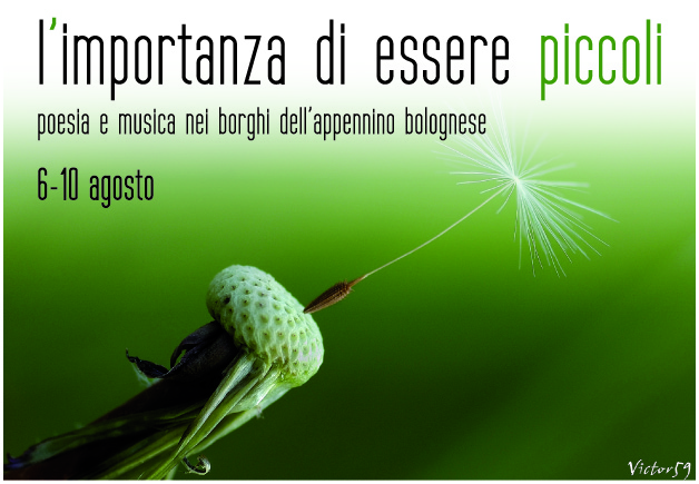 Quando si dice che la poesia non ha seguito. Quando ci si chiede se i testi per le canzoni sono o non sono poesia. Quando ci si lamenta che non ci sono più i cantautori di una volta. Quando si sostiene la politica del ‘grande evento’. Quando si discute se meglio la città o meglio la provincia. Quando si soffre per i tagli alla cultura. Quando la cultura viene considerata intrattenimento, hobby, spreco. Queste e altre questioni su cui meditare sono affrontate in forma pratica all’interno di un piccolo festival che si svolge all’estrema periferia d’Italia, ovvero i piccoli borghi arroccati sulle cime degli Appennini. Per questo si chiama “L’importanza di essere piccoli”, perché proprio nel piccolo, nel minuscolo, cerca di porre delle domande e, allo stesso tempo, di vivere un’esperienza che renda queste domande ricordo personale e materia viva di riflessione.