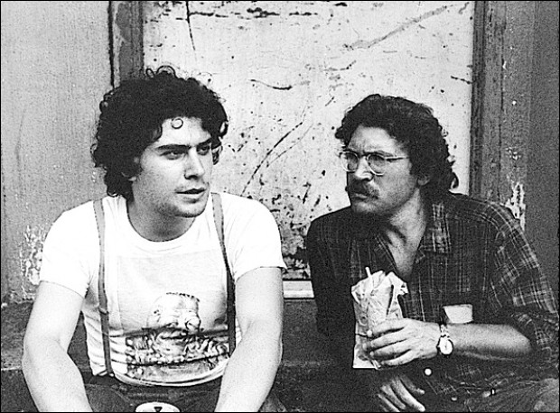 Nella foto Stefano Tamburini (con le bretelle) con Vincenzo Sparagna (coi baffi).